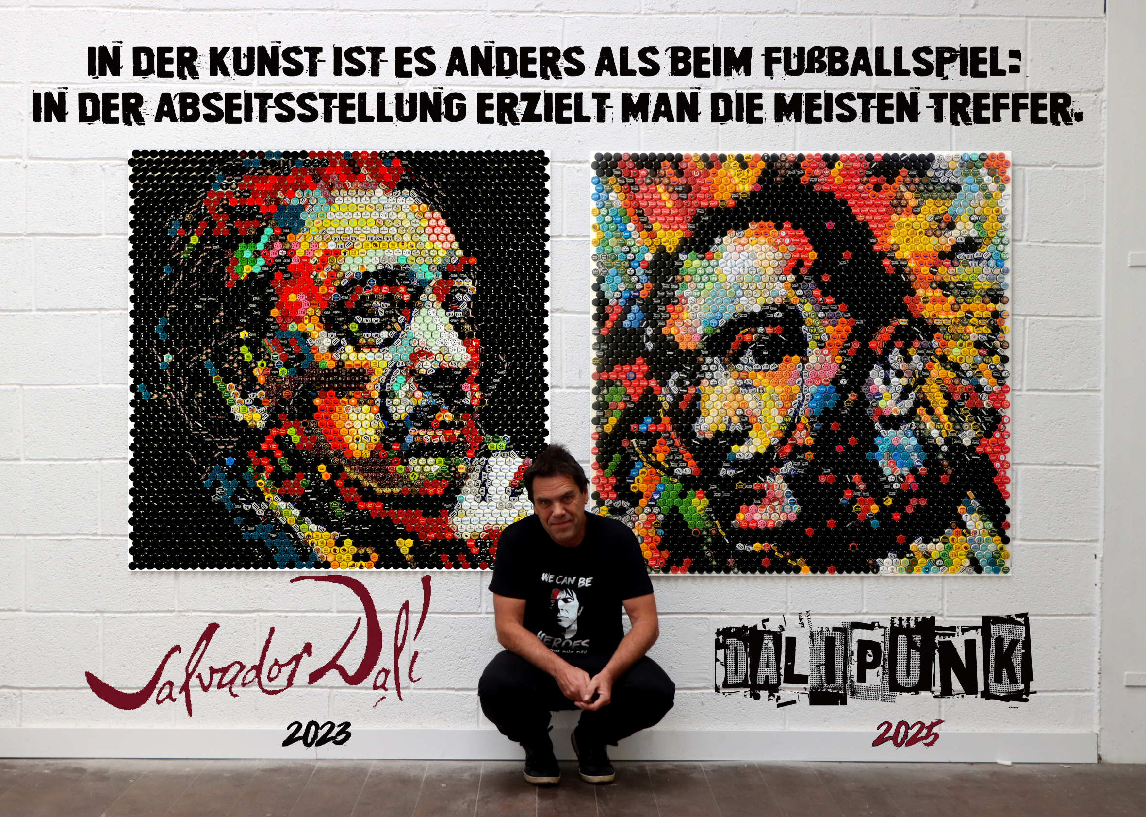 Das neue Projekt 2025: "Axl Rose - Civil War". Das 126 × 149 cm große Kronkorken-Porträt, aufgebaut aus 2540 farblich fein abgestimmten Kronkorken, ist eine kraftvolle Hommage an Axl Rose, den Sänger von Guns’N Roses. Das Werk verbindet rohe Materialität und künstlerische Präzision zu einem Bild, das sowohl die Energie des Rock’n’Roll als auch die Zerbrechlichkeit einer charismatischen Bühnenpersönlichkeit spürbar macht.
