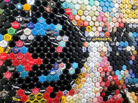 Das Werk „Iron Man“ ist weit mehr als nur ein Mosaik – es ist eine vibrierende Hommage an einen der größten Ikonen der Rockgeschichte, erschaffen aus einem unerwarteten Medium: Kronkorken. Insgesamt 2630 Kronkorken bilden das großformatige Porträt, das in seiner Farbexplosion sofort ins Auge sticht.